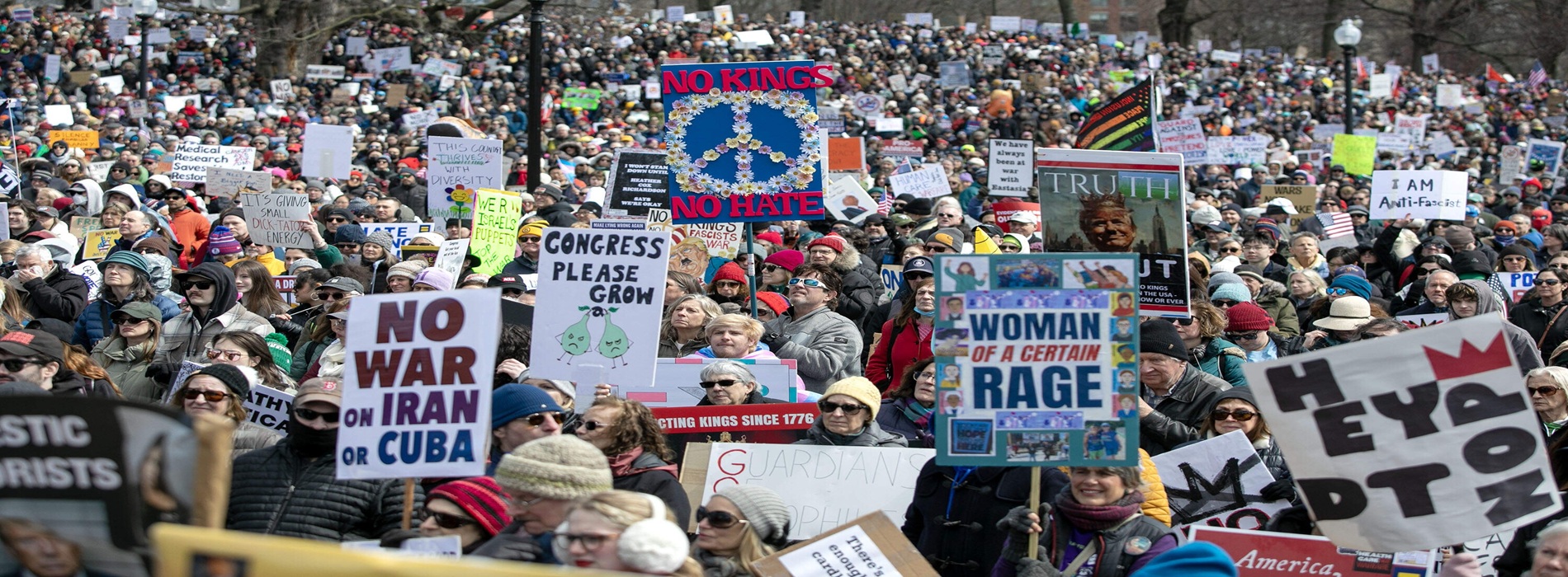 وفي هذه الحرب انقسمت أمريكا مناصفةً بين الحزبين الرئيسيين فيها إضافةً إلى انقسامٍ أوسع وأعمق، على الصعيد الشعبي العام، لم تعد تُظهره استطلاعات الرأي فقط، بل التظاهرات الشعبية التي انطلقت في العديد من الولايات منددةً بالحرب ومطالبةً بوقفها.